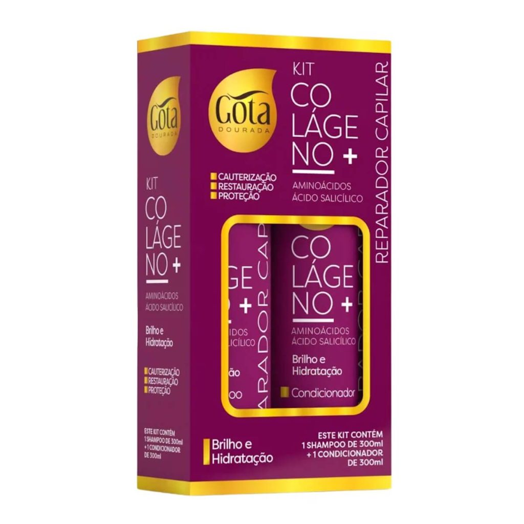 Kit Shampoo + Condicionador Colágeno + 300ml – Gota Dourada